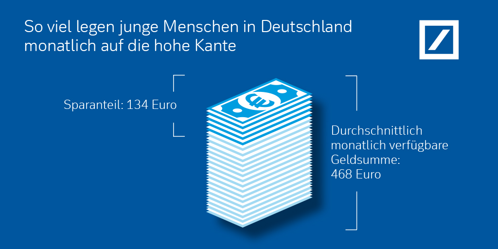 Finanzielle Sicherheit hat bei der jungen Generation einen hohen Stellenwert: 93 Prozent der 14- bis 25-Jährigen ist es wichtig, Rücklagen zu haben (2017: 87 Prozent). Dies spiegelt sich im Sparverhalten wider: Vier von fünf Befragten (81 Prozent) legen regelmäßig Geld zurück. Von durchschnittlich 468 Euro, die ihnen monatlich zur Verfügung stehen, legen sie 134 Euro zur Seite. Damit bleibt die Sparquote mit knapp 29 Prozent auf einem sehr hohen Niveau und liegt deutlich über der Sparquote aller privaten Haushalte in Deutschland (2017: rund 10 Prozent). Junge Männer sparen im Monat durchschnittlich 151 Euro, junge Frauen 116 Euro. Allerdings haben Männer zwischen 14 und 25 Jahren mit 526 Euro auch 116 Euro monatlich mehr im Portemonnaie als gleichaltrige Frauen, die im Schnitt über 410 Euro verfügen. Die Einnahmen stammen aus Taschengeld, Nebenjobs, Ausbildung und Berufstätigkeit.