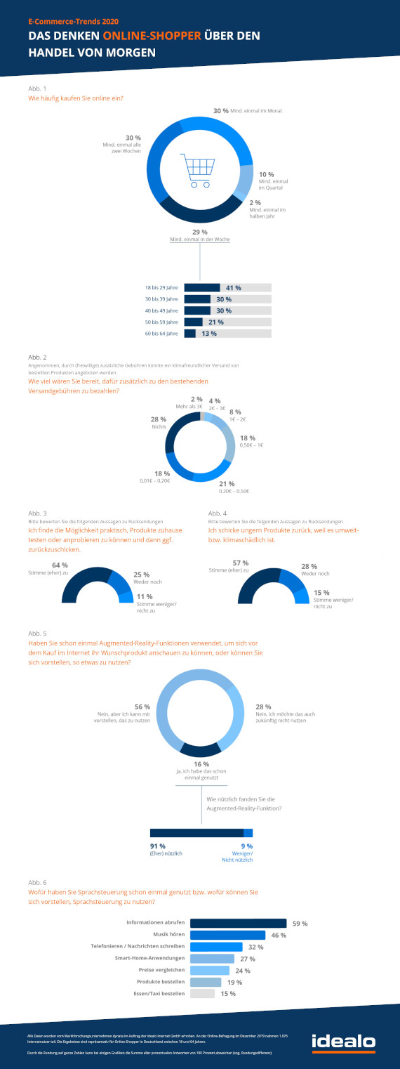 *Über die Studie: Alle Daten wurden vom Marktforschungsunternehmen dynata im Auftrag der idealo internet GmbH erhoben. An der Online-Befragung im Dezember 2019 nahmen 1.076 Internetnutzer teil. Die Ergebnisse sind repräsentativ für Online-Shopper in Deutschland zwischen 18 und 64 Jahren.