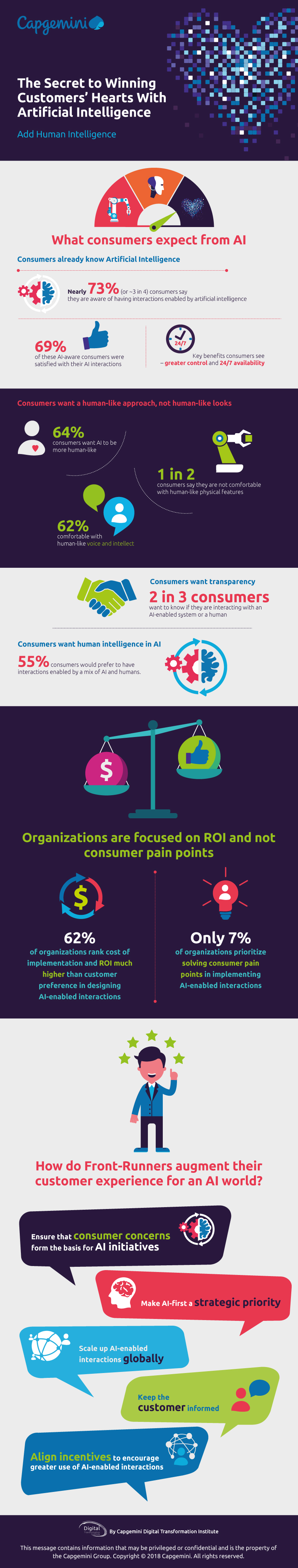 Ingo Finck, Vice President Augmented Intelligence und Experte für KI bei Capgemini Consulting: „Es ist fast ironisch, dass digitale Sprachverarbeitung und maschinelles Lernen es Unternehmen in bestimmten Situationen ermöglicht, tiefere und effektivere Beziehungen zu ihren Kunden aufzubauen. KI im Kontaktpunkt zum Kunden hilft, seine Ausgaben und Loyalität zu steigern. Wie unsere Studie zeigt, profitieren davon am meisten die Unternehmen, die Künstliche Intelligenz in ihrer Kundenkontaktstrategie priorisieren – neben Kostengesichtspunkten und interner Prozessoptimierung.“