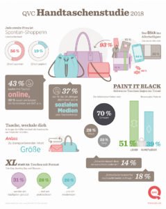 Wichtig ist, dass viel reinpasst! Denn zu den beliebtesten Formaten zählen große Modelle wie Shopper, Tote Bag und Bowling Bag. Sie werden nicht nur am häufigsten getragen (31 Prozent), sondern auch am praktischsten (28 Prozent) sowie am modernsten (26 Prozent) empfunden. Über die neuesten Trends informieren sich die 18- bis 24-Jährigen über Social Media Kanäle. „Die Ergebnisse der Studie bestätigen, dass das digitale Einkaufserlebnis für den Handel immer wichtiger wird. Wir bei QVC setzen bereits auf eine Multichannel-Strategie und interaktive Kommunikation. Zudem bieten wir den Konsumenten eine emotionale Erfahrung getreu unserem Motto ‚Find what you love.Love what you find‘, so Gina Deeble, Vice President Merchandising von QVC Deutschland.