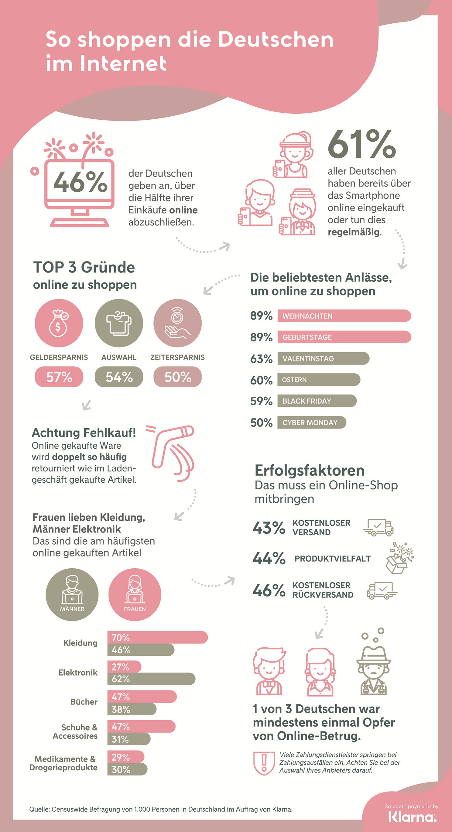 • Geld sparen, die breite Auswahl und Zeitersparnis sind die drei Top-Gründe im Internet einzukaufen